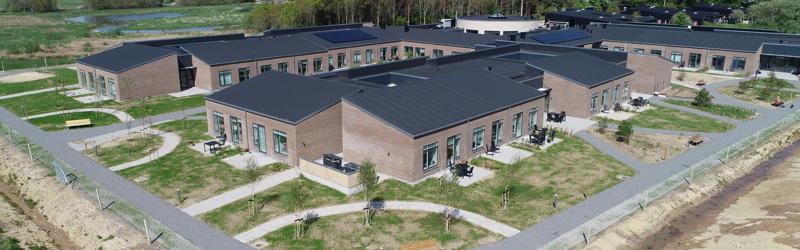 De 30 demensboliger er opdelt i to huse med 15 boliger i hver. De 15 boliger er yderligere inddelt i to sammenhængende afsnit med henholdsvis syv og otte boliger i hver. I hvert afsnit er der spisekøkken, dagligstue og udgang til gårdhave samt de ydre udearealer.